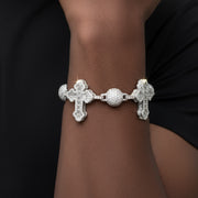Bead Ball Cross Sterling Silver Moissanite Iced Bracelet