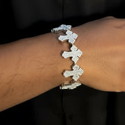 This Master Of Bling Cross Link Designer Bracelet is made of pure 925 sterling silver, and studded with baguette and round cut moissanite diamonds.