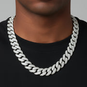 14mm White Tone Emerald Cut Moissanite 20.4CT Cuban Chain