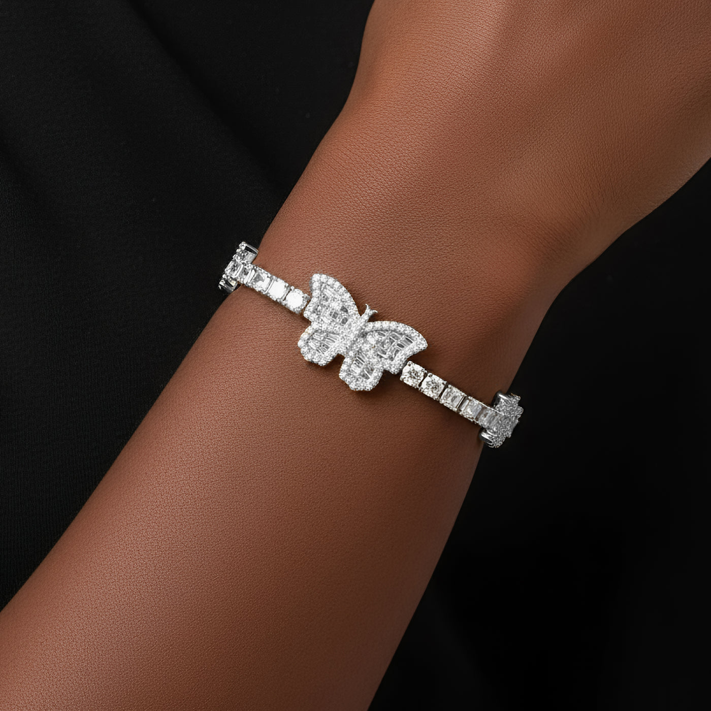 This Master Of Bling Bracelet Is studded with handset moissanite diamonds throughout the links. Each Link is Imaculately crafted for the Bracelet to rest perfectly around your wrist.