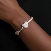 Moissanite Tennis Heart Link Bracelet 925 - White Gold / 5.5"